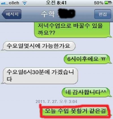 사건이 일어난 그 날 저는 가족 약속이 있어서 과외를 취소하게 됫씁니다>_<