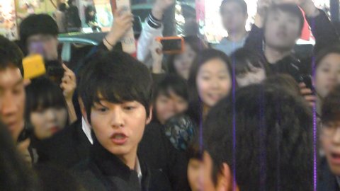 나는 많은 인파 속에서 송중기씨를 기다리고 있었소.