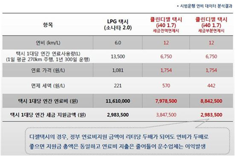 때문에 클린디젤 택시에 면세 혜택을 줘도 연비가 2배 이상 좋으니