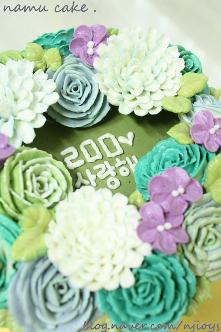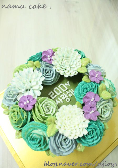 버터크림으로 꽃을 만들어 케익에 장식하는 케이크예요