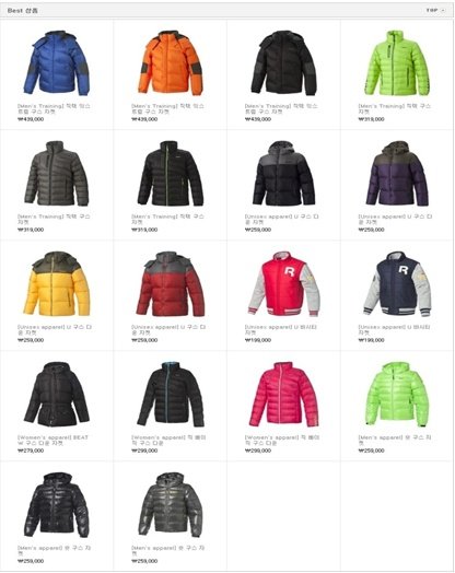 클래식 윈터 자켓 등 다양한 패딩 제품들이 있었습니다.