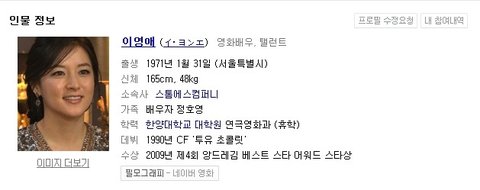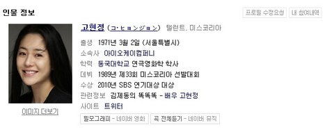 한국 연예인 유명인 프로필에