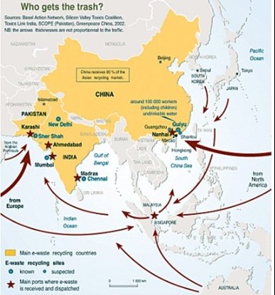 가장 큰 문제는 선진국의 많은 양의 전자 페기물들이 그것을 해체할 값산 노동력과 폐기물을