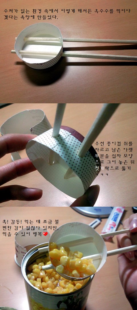 스위트콘을 사왔는데 정작 수저는 없어서 젓가락으로 새어 먹어야하나?ㅠㅠ 하던중!