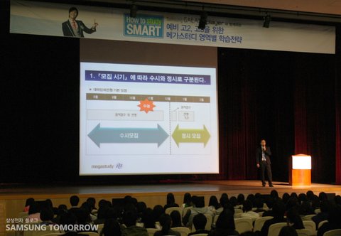 제일기획 홍승표 프로 저도 제 아이의 부모로서 더욱 풍성하고 좋은 교육의 기회를 제공하고 싶어요. 이번 수능특강과 갤럭시 플레이어는 그러한 부모의 마음이 담긴 행사이자 제품이라고 볼 수 있답니다. 또, 이렇게 좋은 기회가 수도권에서만 열린다는 아쉬운 점을 생각해서, 서른 명의 평창 고등학교 학생들을 행사에 초대했답니다. 남은 두 번의 행사에서도 지방에서 많은 학생들이 올라와 참여했으면 좋겠습니다.