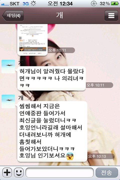 아까전에 밤에 나랑 허개랑 톡 하거임.
