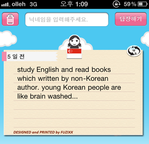 친구들한테 이 엽서를 보여주니까 욕하면서 어이없어하던데