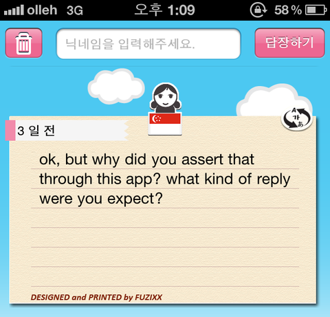 걍 뭔 대답 기대한거도 아니고 어플 처음받고 재미로 보내본건데