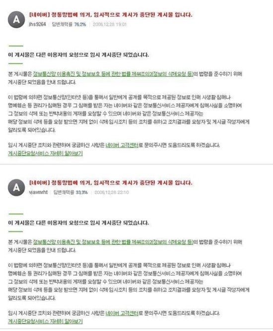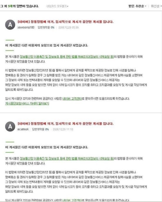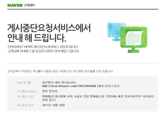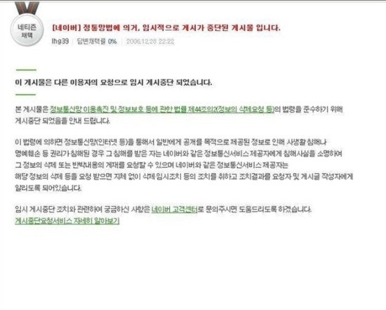 네이버측은 이 댓글은 나의 것이 아니므로 이 댓글을 찾아가서 삭제해야지 이 게시글을 중단하면 정말로 돈을 받아먹고 하고있다는 말밖에 안된다.