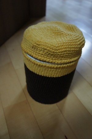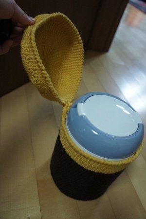 쓰레기통에 엄마와 내가 직접 만든 옷을 입혀주었소