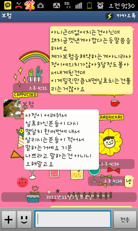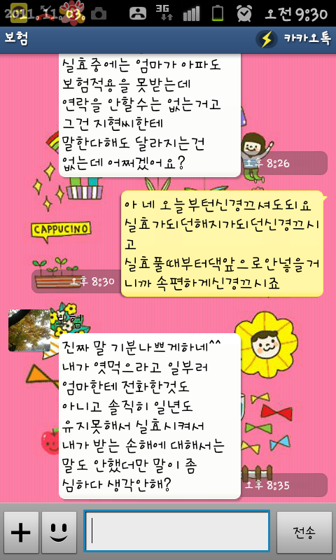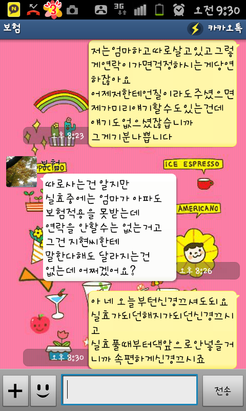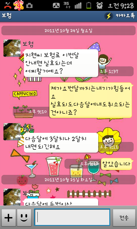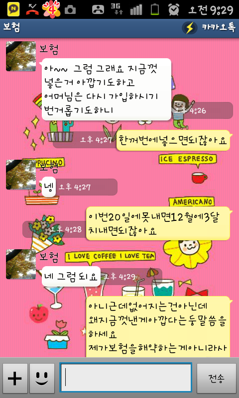 보험 FD와 카톡한 내용임
