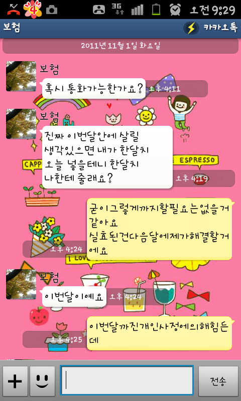 이게 저번달에 카톡한 내용임