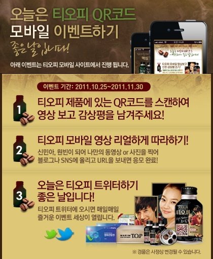 그냥 커피는 왠지 안땡기는 나~ TOP를 마시는데.. 옆에 왠 QR코드가 붙어있길래