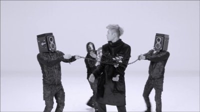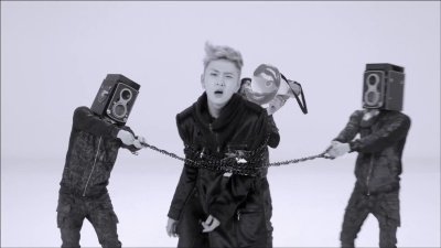 쇠사슬을 붙잡고 있는게 사람이 아니라 입 모야의 확성기와 스피커 두 개죠.