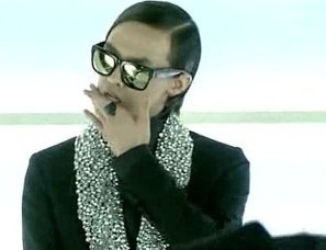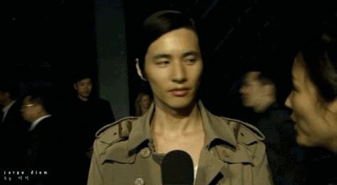 베이징 버버리 런칭쇼에서 8:2머리와 함께 리포터를 지그시 바라보는 원빈.gif