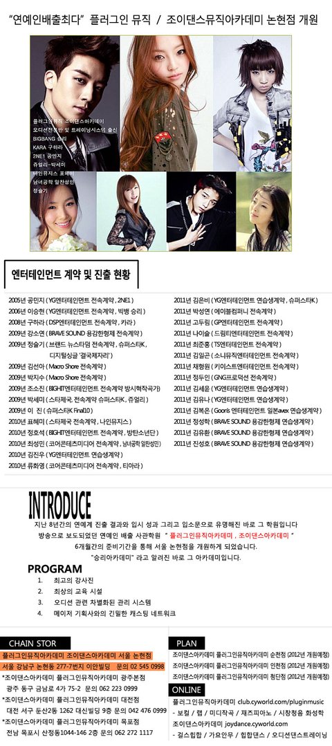 빅뱅 승리, 2NE1 공민지, 카라 구하라를 배출한 아카데미를 알게 되었는데