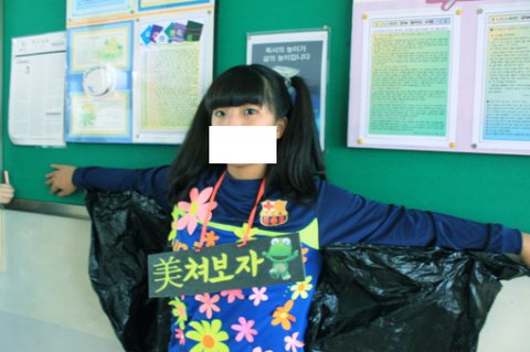 얘 옷 보임?ㅋㅋ 저거 플랜카드 만들고 남은 재료 재활용한거임! 우리는 환경을 생각함 *^^*