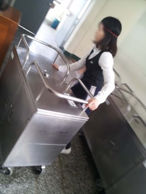 우린 급식차를 미리 반앞에 갖다놓기로 함