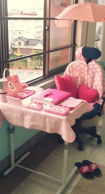 ☞핑크핑크!의 기운의 느껴지시나요?! 토요일 자습때 정곤느님이 앉아계시던 자리를 예쁘게 바꾼