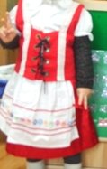"빨간 원피스 같은거에 앞치마 같은 하얀게 걸쳐져 있었다"