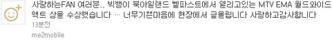 ★빅뱅이 Mtv EMA에서 Worldwide Act상 받았어요★