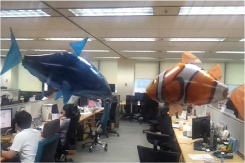 사무실을 들어가면 항상 물고기 몇 마리가 날아다니고 있음