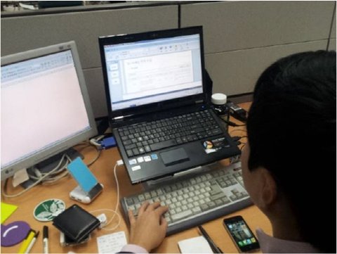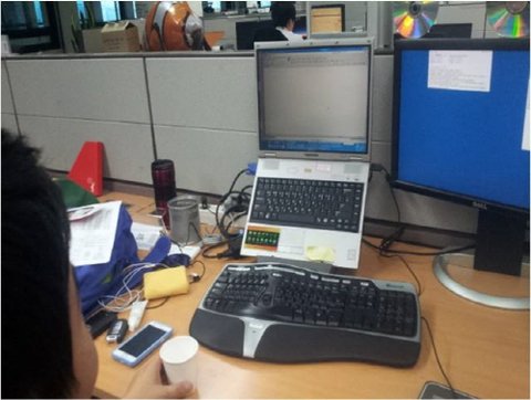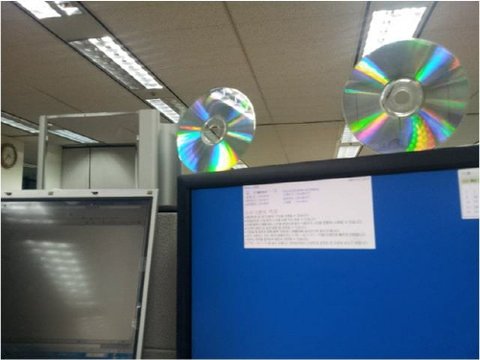 평범한 건 싫다며 모니터에 CD를 달아놓은 박 주임의 책상