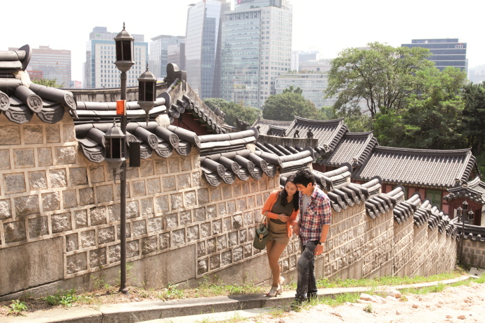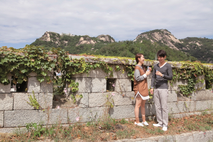 인왕산을 올라 사직공원 쪽으로 내려가면 서울 성곽길이 보인다. 북악산 서울 성곽의 정상 코스라기보다는 인왕스카이웨이로 이어지는 중간에 자리한 짧은 코스다. 사방이 산이어서 마치 거대한 병풍 속에 들어와 있는 기분이다. 덕분에 커플들의 베스트 포토 존! 꼭 뒤를 돌아보며 걸어라. 거대한 서울이 내 품 한가득 들어온다!
