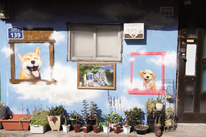 6·25 한국전쟁 이후, 스산하던 잿빛 마을의 모습을 화사하게 바꾼 것은 미술 전공 대학생 1백30여 명 덕이다. 마을 곳곳에는 아기자기한 51가지 그림으로 가득 찼고, 서울의 동피랑 마을이 되었다. 마을 끝까지 오르는 길이 무척 가파르지만, 주변을 가득 채운 예쁜 그림들이 위안이 된다. 홍제역 2번 출구 앞에서 마을버스 7번이 개미마을의 끝까지 오르내리니 참고하시라.