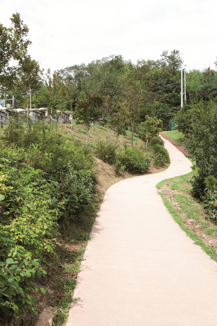 성곽이 끝나는 길부터 이어지는 인왕스카이웨이. ‘스카이웨이’라는 이름답게 산자락에 있어 걷는 모든 길에서 서울 시내를 조망할 수 있다. 이곳부터 윤동주 시인 언덕까지 거리는 1시간 이상 소요. 길이 가파르거나 험하지는 않지만, 제법 인내심이 필요한 짧지 않은 구간이다. 시원한 물이 든 물병은 필수!