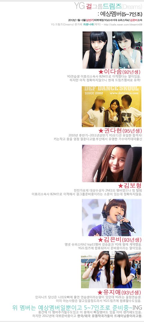 2012년 상반기에 YG에서 데뷔하는 걸그룹 드림즈(가칭)임.