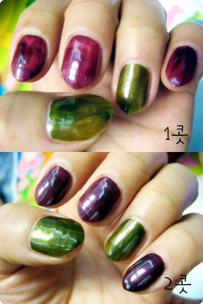 발랐는데;;;; 살짝 컬러들이 밀리는 느낌이예여~2콧째는 괜찮구여~!