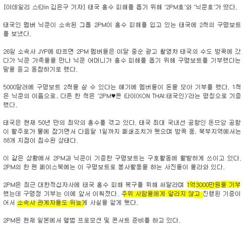 JYP도 모르게 기부했다네요 ,,,하하.... 돈 이렇게 잘벌줄 몰랐지요ㅠㅠ...