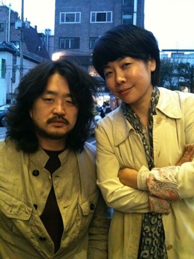 사진 속 김미화와 김어준은 베이지색 계통 비슷한 의상을 입고 카메라를 응시하고 있다. 김어준 무표정과 김미화 미소가 눈길을 끈다.