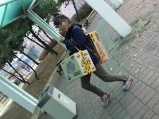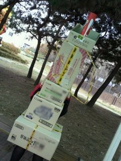 트뤤스 뽈머 (오가는사람 다쳐다봄 그래도 굴하지않는 똘끼정신파워!!!)첨에 괘찮아 상자로 얼굴을 다가리면 되자나???? ㅋㅋㅋ 내머리위에 똥