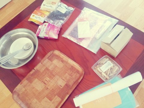 먼저 과자에 초콜릿을 녹여서 발라주었어효