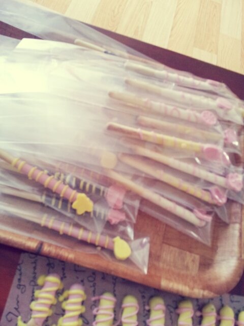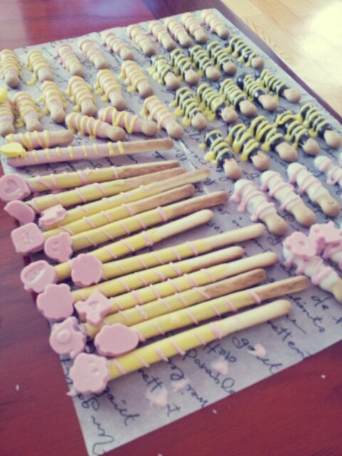 중간과정이 빠졌지만 몰드에 초콜릿을 붓고 얼려서 빼빼로에 붙였어요