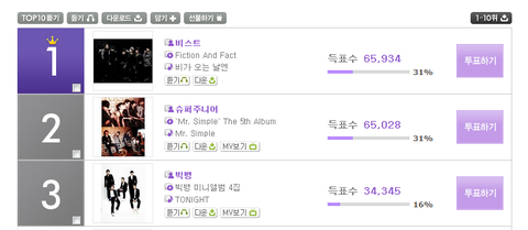 슈주 비스트 멜론 어워드 박빙이던데... ㅎ