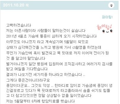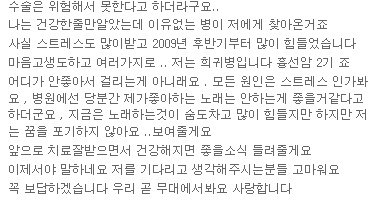 제발 한번씩 응원해주세요 항암치료 힘든거라는데 힘내서 이겨서 무대에서 다시볼수있도록