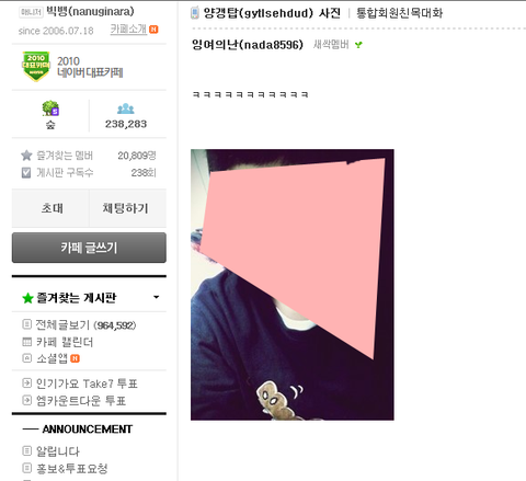 빅뱅팬카페 'Welcome To The BIGBANG World' 라는 곳이기 때문이에요.