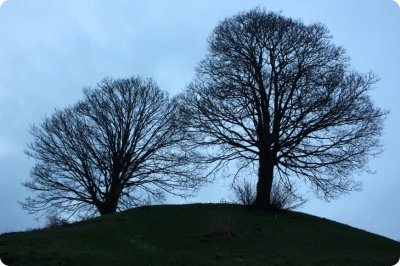 큰 언덕위에 나무가 멋드러지게 심어있음.