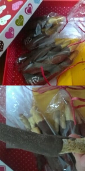 여전히 개성강함 ㅋㅋㅋㅋㅋㅋㅋ짜잔 이렇게 다 만든 빼빼로 포장해서 ㅋㅋㅋ(남자친구네 동네에는 포장봉투 파는 곳이 없어서 빵집가서 구걸했다함 ㅠㅠ )