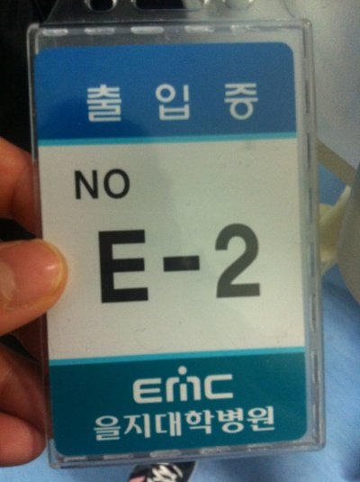 면회시간때 환자분 가족에게만 주는 중환자실 출입증 입니다.