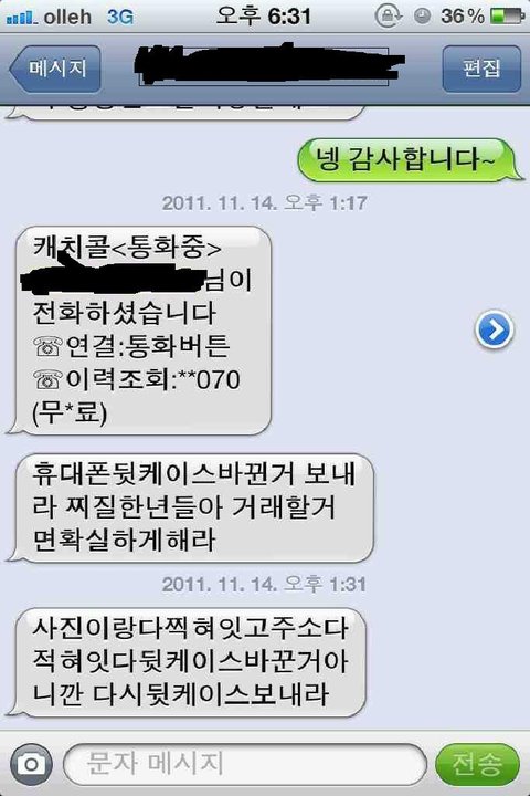 "나도 몰라;; 그러면서 나한테 당장 니 번호 알려달라고 엄청 뭐라고 협박을 했어;;;;;"