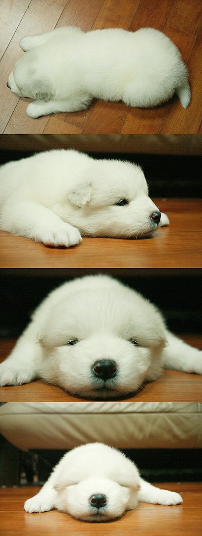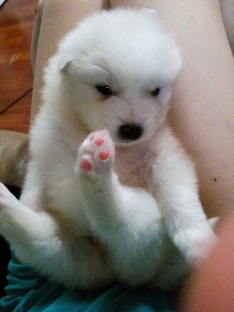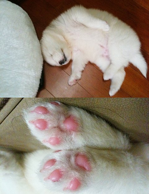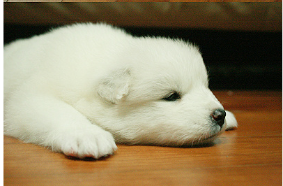 ▼ 하니를 경계케한 장본인 사모예드 "고미" (하니보다 1주일더늦게태어나셨스미다)