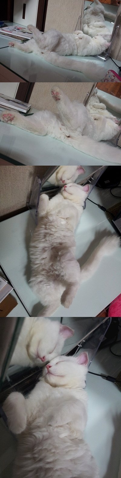 ▲ 내 잘쇙긴얼굴을보다 지쳐 잠들지. 깜박하고 다리한쪽들고있던것도 깜빡한채말이야.