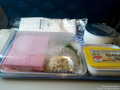 비행기가 안정을 찾자 기내식(이라 말하고 간식이라 칭한다)이 나온다.