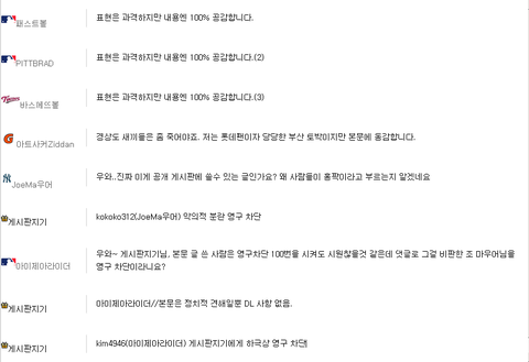 야구사이트처럼 보이지만 그냥 정치색에 찌들어사는 인간들이 모여있는 사이트입니다
