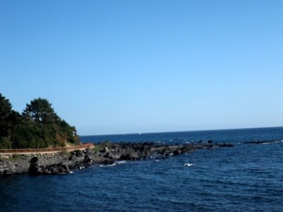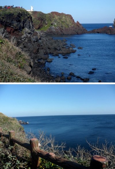 섭지코지 올라가는 길~~ 여기도 물이 정말 파랗다~~!!