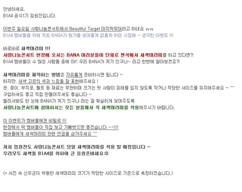 네이트 판포토에서 보이프렌드사진이 나왔을 때 무개념바나 몇분이 ‘팬들 때문에 망한 케이스’라고 이어서댓글을 썻습니다. 죄송합니다. 정말 죄송합니다. 바나중에 초딩이좀많습니다.(뭔말인지..아시겠죠?)한참 성장하는, B1A4랑 비슷한때에 데뷔하고,활동하는 아이돌에게,또 그 팬덤에게 상처를 주엇습니다. 대신해서 사과드릴께요. 죄송합니다.